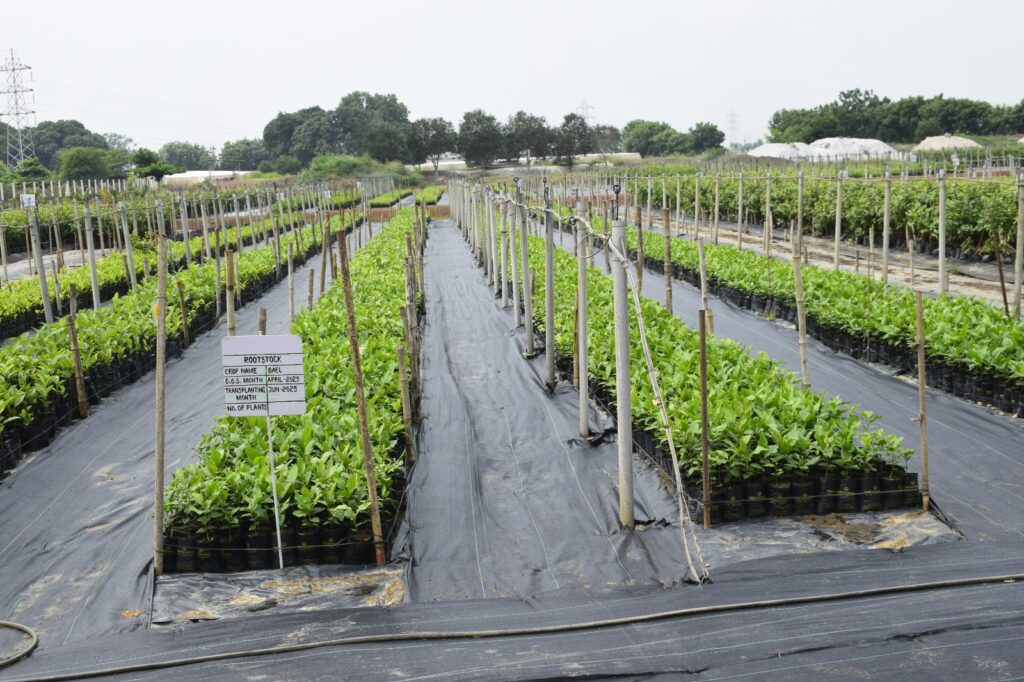 - लंबी अवधि में पौधे रखने पर अथवा अन्य कारणों से पौधे के पॉलीबैग के ऊपरी हिस्से की मिट्टी से लेकर ग्राफ्टिंग अथवा बडिंग जोड़ के नीचे तक किसी भी प्रकार की वानस्पतिक वृद्धि को निरंतर हटाये| यह वृद्धि मूलवृन्त/रूटस्टॉक की होती है
