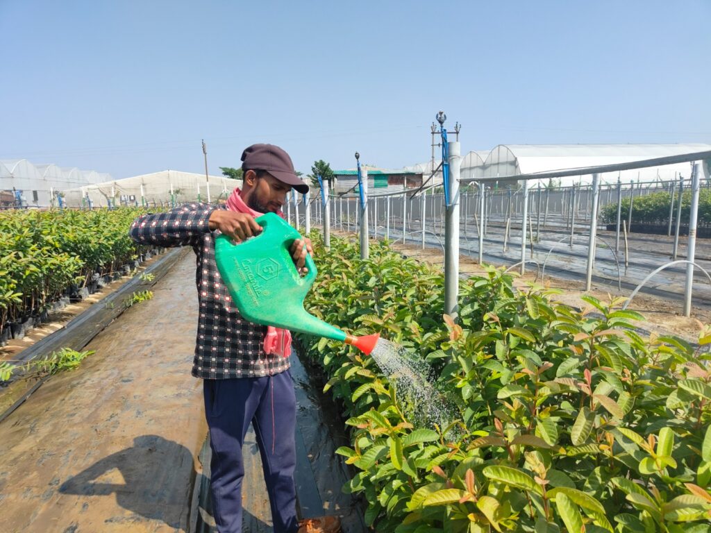- सिंचाई के बाद प्रत्येक पॉली बैग की मिट्टी पर्याप्त रूप से गीली होनी चाहिए क्योंकि जड़े पॉलीबैग की मिट्टी में ही विद्यमान है |