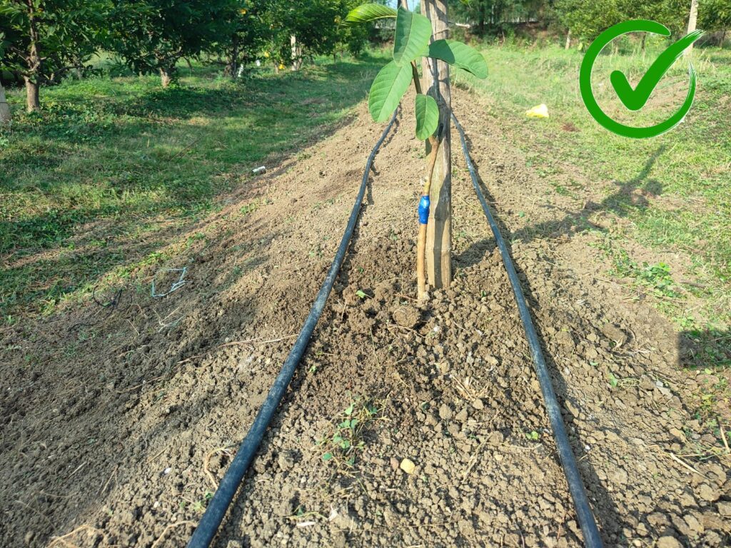 • ड्रिप / टपक सिंचाई की पाइप पौधों के पास फैलाना