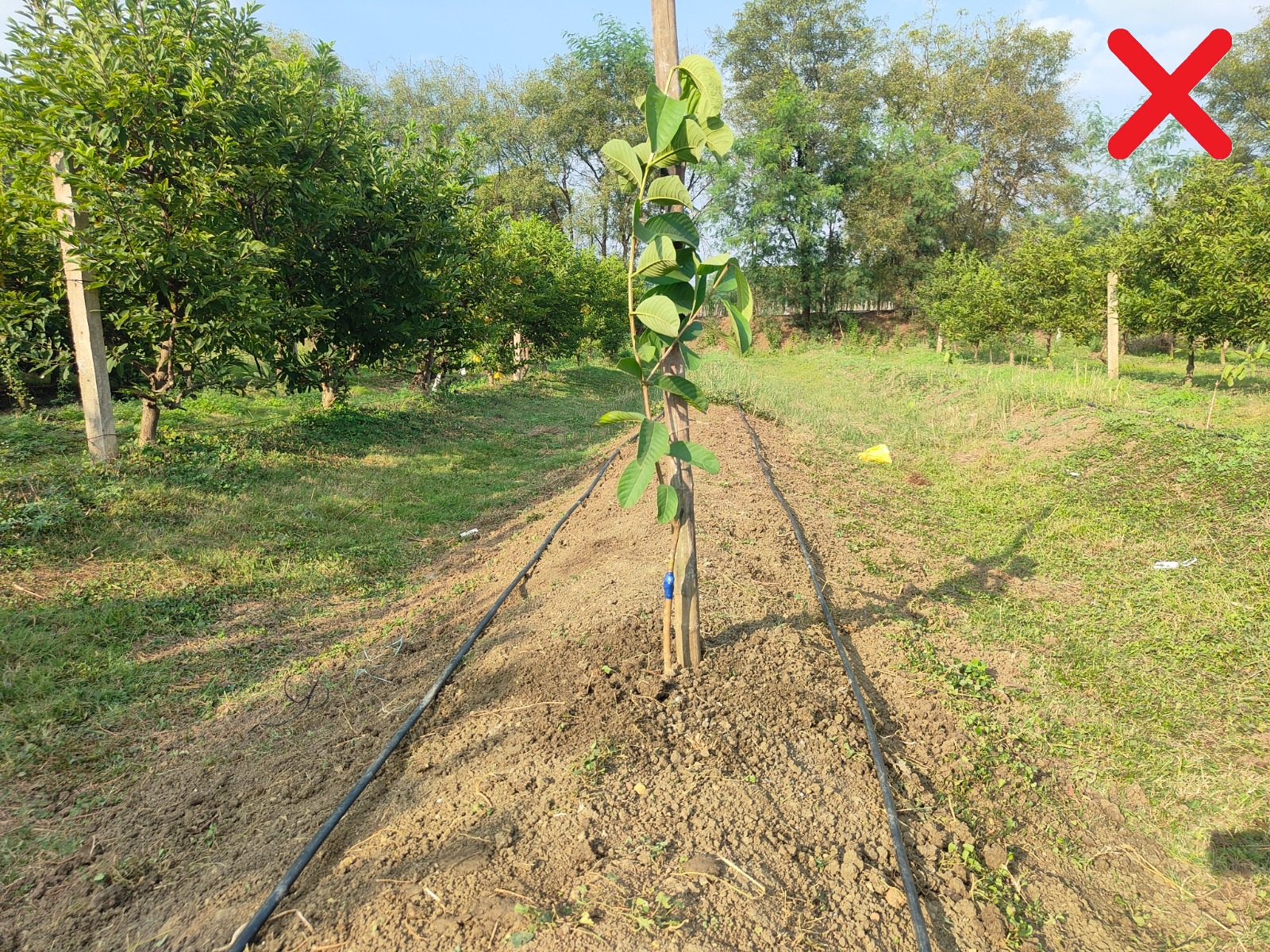 वी एन आर बीही अमरूद के लिए टपक सिंचाई अथवा ड्रिप की पाइप का स्थानन