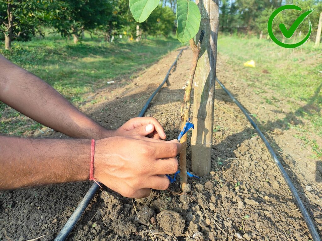 पौधरोपण के 15 से 20 दिन पश्चात ग्राफ्टिंग जोड़ के मजबूत होने के बाद टेप निकालना चाहिये